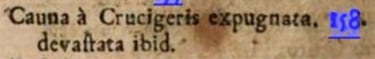 Aukštiesiems pareigūnams įsakius ir leidus , brolis Henrikas iš Šioningeno [išvyko ] suprisiųsta is jam meistrais išžvalgyti ir nustatyti Kauno pilies ir mūrų storumo , gilumo ir aukštumo , ir pastatyti mašinų , sienodaužių ir t. t. bei pranešti tų duomenų magistrui, nes ateinančią žiemą manė pulti Kauną <....> kurio mūrą krikščionys buvo jau taip suknežinę , kad jis nuvirto drauge su stabmeldžiais . Krikščionys supuolę žeidžia juos ir žudo , ir šitaip užėmė priešpilį, o stabmeldžiai buvo priversti šliaužti [ atgal ] į pilį.